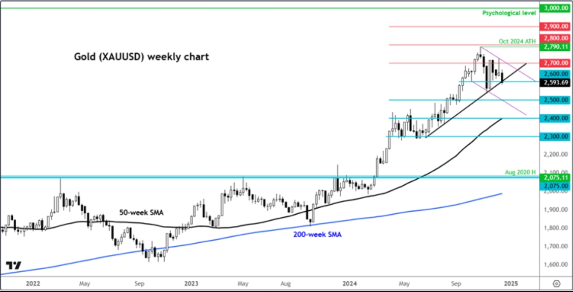 如果价格在2025年突破新高,3000美元将是下一个需要关注的重要心理水平。预计此处至少会出现一些获利回吐。