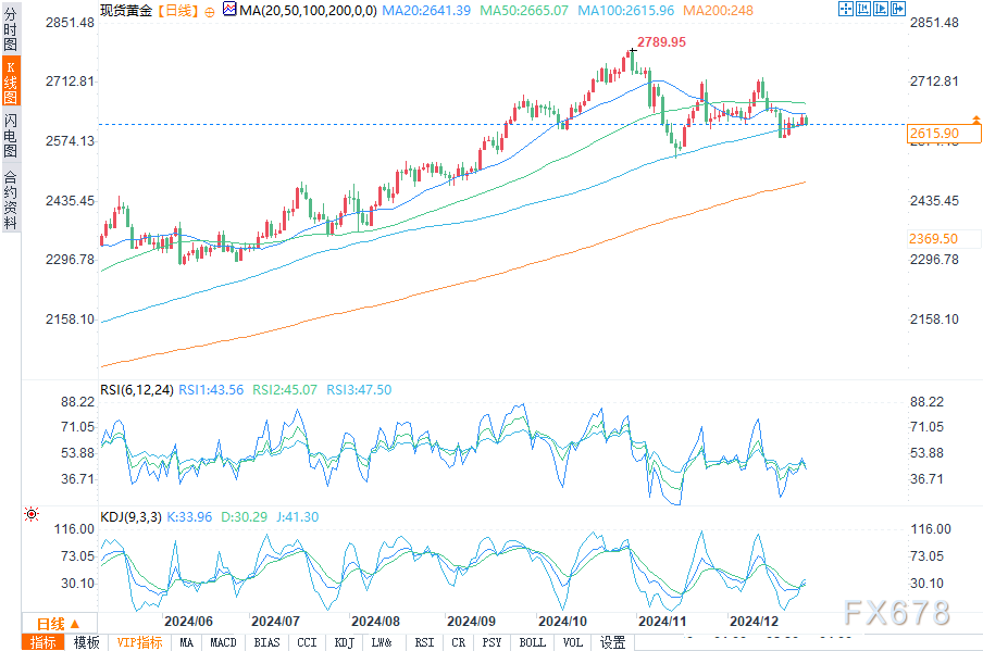 金价若跌破2607.35美元可能会进一步下跌,但在新的一年流动性回归之前,金价走势可能会维持在区间波动。2665.65美元附近的阻力位仍是关键的上行阻力,除非地缘政治紧张局势大幅升级,否则黄金的阻力最小路径有利于下行。