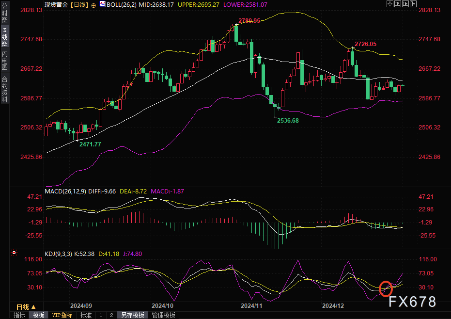 周四(1月2日)亚市早盘,现货黄金窄幅震荡,目前交投于2623.38美元/盎司附近。周二金价收涨0.72%,收报2624.28美元/盎司,帮助金价2024年上涨27%,创下了创下2010年以来的最大年度涨幅,受避险需求和各国央行降息带动;不过市场情绪可能会变得更加谨慎,这取决于特朗普第二任总统任期内的政策转变。另外,美元指数周二创下两年新高,美国 10 年期收益率创两年来最佳年度涨幅,黄金堵头也有所顾忌。