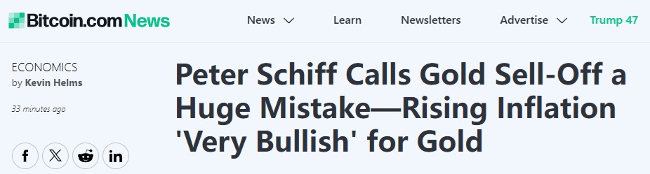 周三,希夫在社交媒体平台X上表示:“在通胀超出预期的情况下抛售黄金的下意识反应是错误的。”他并详细说道:“通胀上升对黄金非常利好。降息是否推迟并不重要。重要的是美联储加息失败。随着通货膨胀上升,实际利率正在下降。”