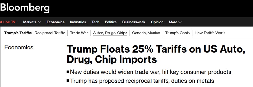 FX168财经报社(亚太)讯 美国总统特朗普(Donald Trump)当地时间周二(2月18日)表示,他可能会对汽车、半导体和药品进口征收约25%的关税,最早将于4月2日宣布。