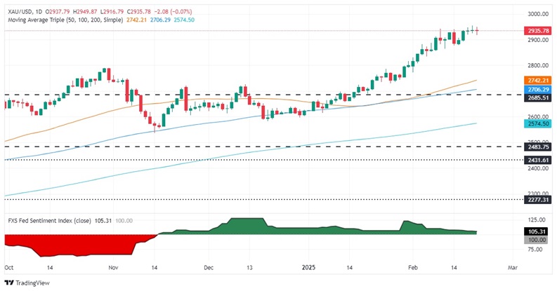 24K99讯 周一(2月24日)亚市早盘,现货黄金短线突然遭遇猛烈抛售,金价目前最低跌至2922.23美元/盎司;稍早金价曾触及时段高点2940.48美元/盎司。FXStreet分析师Christian Borjon Valencia撰文,对金价技术走势进行分析。