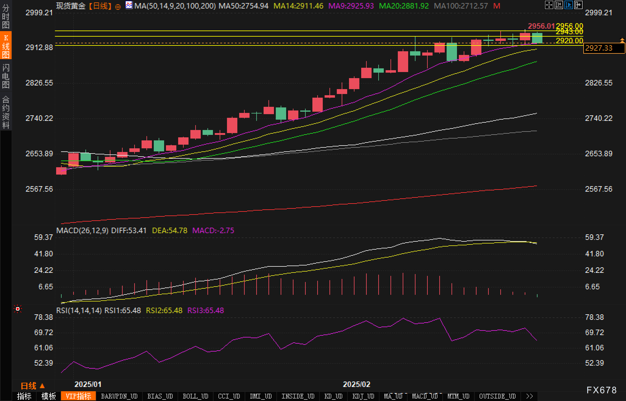 如果金价跌破2920美元支撑位,可能会迎来更深的回调,而若金价能够突破历史新高2956美元,则可能开启新的上涨空间。关注未来的技术面信号,尤其是PCE数据发布和美联储官员讲话前后的市场反应。