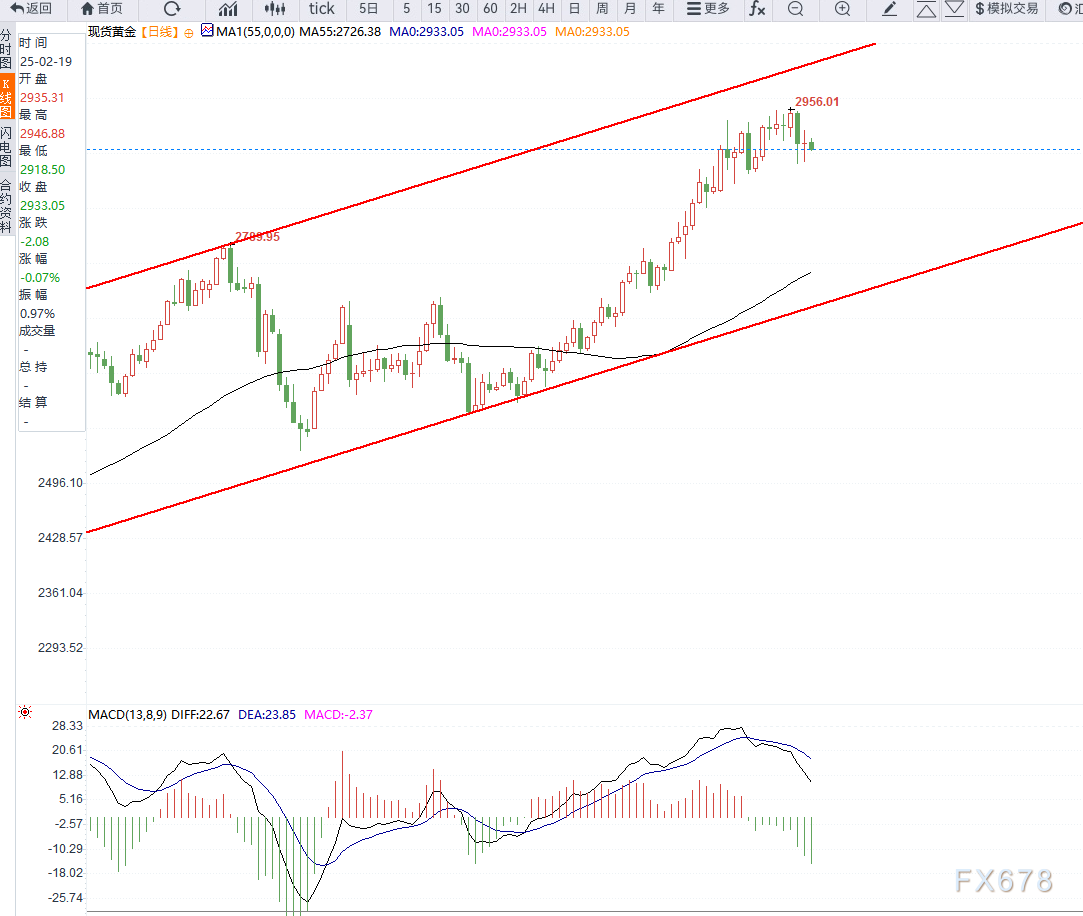 当前市场对特朗普的贸易政策充满不确定性,投资者正在密切关注未来的关税实施情况。此外,美国经济数据表现疲软,市场普遍预计美联储将在2025年降息两次,这在一定程度上支撑了金价的上涨。