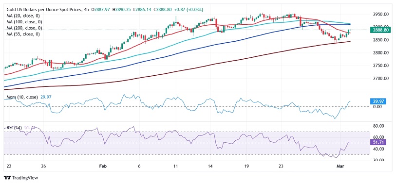 24K99讯 周二(3月4日)亚市盘中,现货黄金价格在昨日暴涨后保持坚挺走势,目前金价位于2893美元/盎司附近。FXStreet首席分析师Valeria Bednarik撰文,对黄金技术前景进行分析。