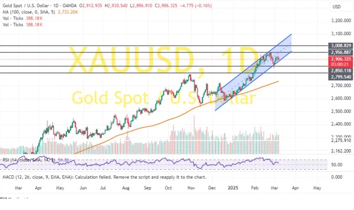 周一(3月10日)亚市盘中,现货黄金短线持续回落,金价刚刚跌破2910美元/盎司,较早盘触及的日内高点2918.30美元/盎司回落近10美元。知名财经网站FXDailyReport分析师Nicholas Kitonyi撰文,对黄金后市走势进行分析。