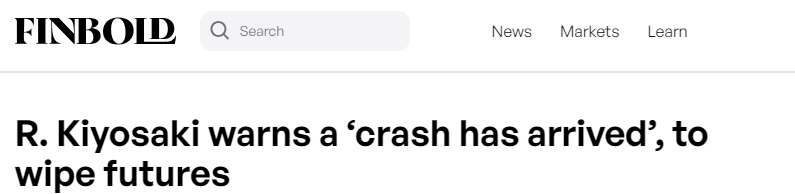 FX168财经报社(亚太)讯 在股票市场经历大幅下滑且人们对经济衰退的担忧挥之不去之际,金融教育家罗伯特·清崎(Robert Kiyosaki)警告称,股市崩盘可能已经到来。