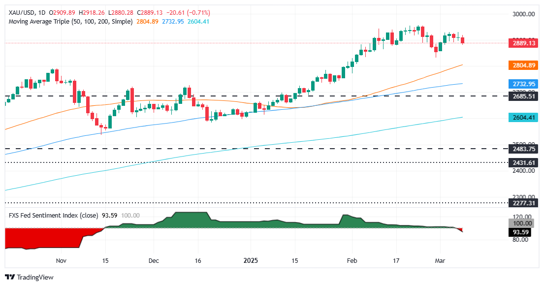 FXStreet分析师Christian Borjon Valencia指出,金价周一稍早跌至2880美元/盎司的五周低点,动能即将转为看跌,相对强弱指数(RSI)准备跌破50中性关口。
