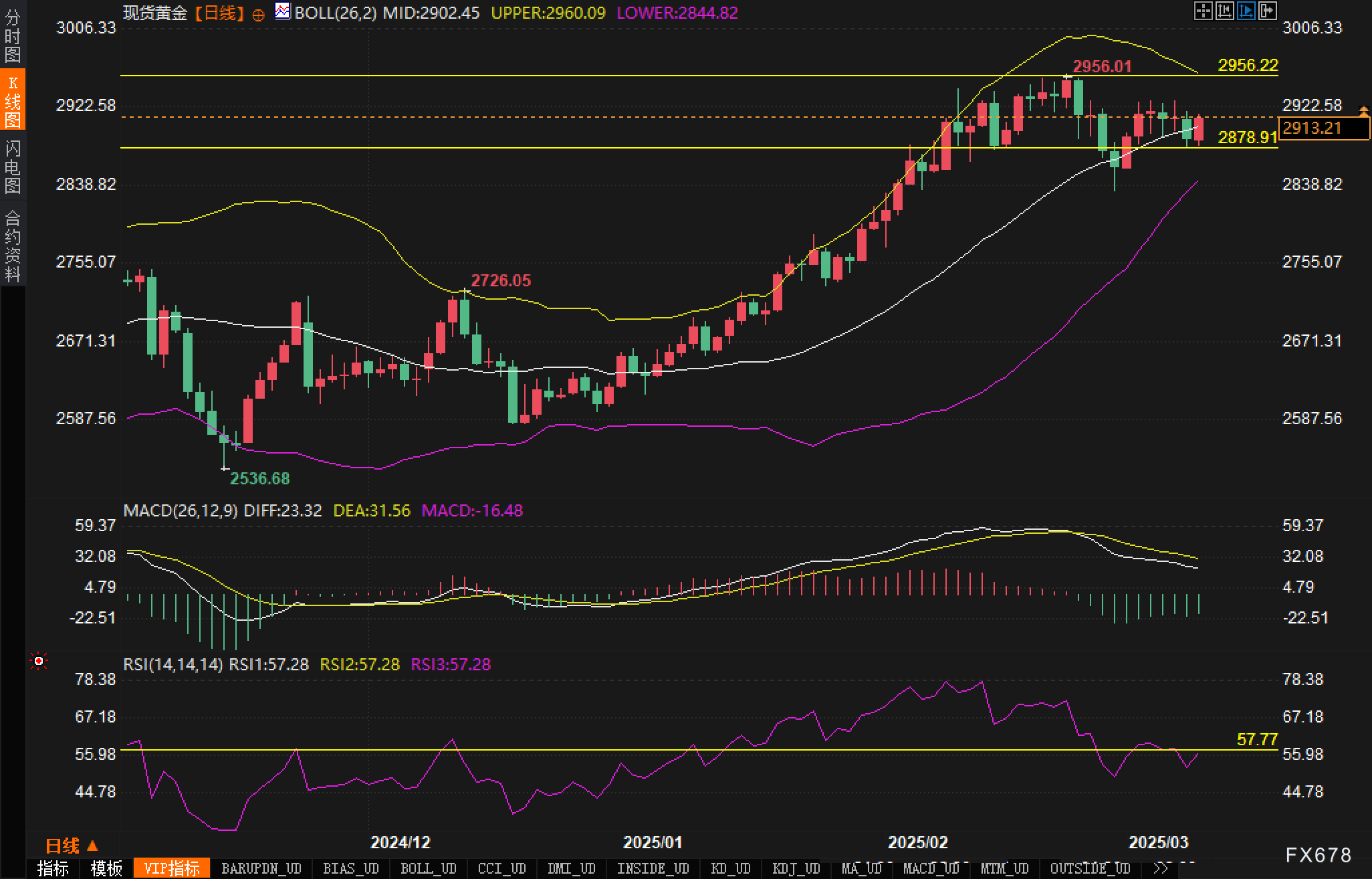从波动角度看,金价在2月底形成的2880.52美元支撑位已经守住,并可能形成新一轮上涨的基础。日线图显示,自2536.68美元低点以来的上升趋势仍然完好,近期最高点2956.01美元可能成为短期内的关键阻力。