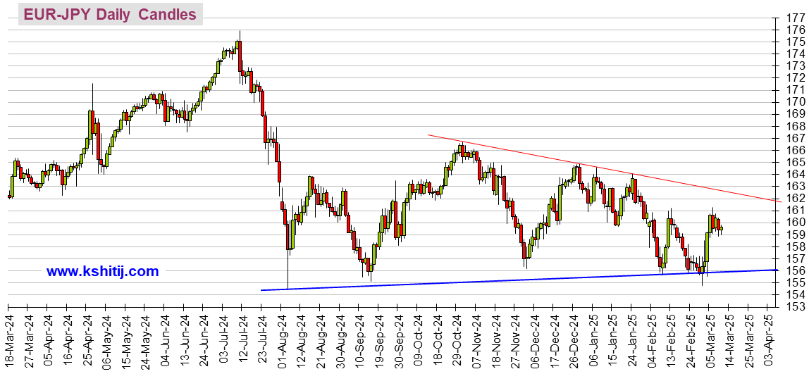 欧元/日元在低于阻力位162的情况下似乎处于修正下跌中。一旦决定性地跌破159,可能将下行目标158-156进入视野。