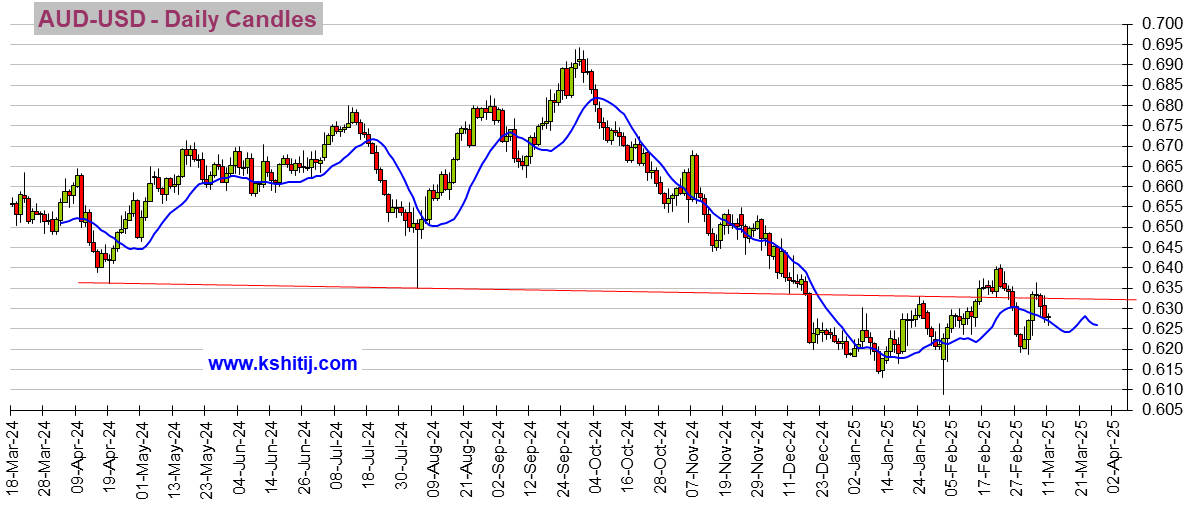 澳元/美元小幅下跌,低于昨日高点0.6327。澳元/美元将不得不维持在0.62以上,并继续走高,以建立一个稳定的上升趋势,否则中期可能会下跌。目前,0.62-0.64区间似乎保持良好。
