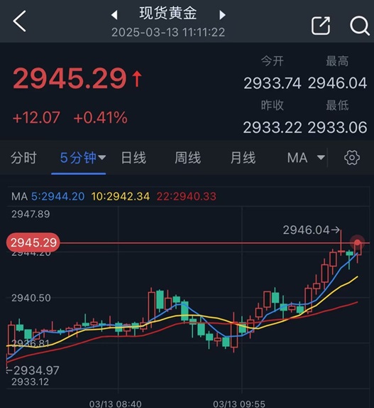 24K99讯 周四(3月13日)亚市盘中,现货黄金短线突然加速上涨,金价刚刚突破2945美元/盎司,最高触及2946.04美元/盎司,日内强势攀升12美元。美国总统特朗普最新的言论引发避险情绪升温,并刺激金价走强。