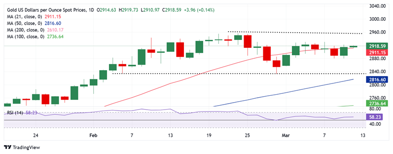 24K99讯 周三(3月12日)欧市早盘,现货黄金维持日内温和升幅,目前金价位于2917美元/盎司附近。投资者等待美国CPI数据。FXStreet高级分析师Dhwani Mehta撰文,对金价交易进行分析。