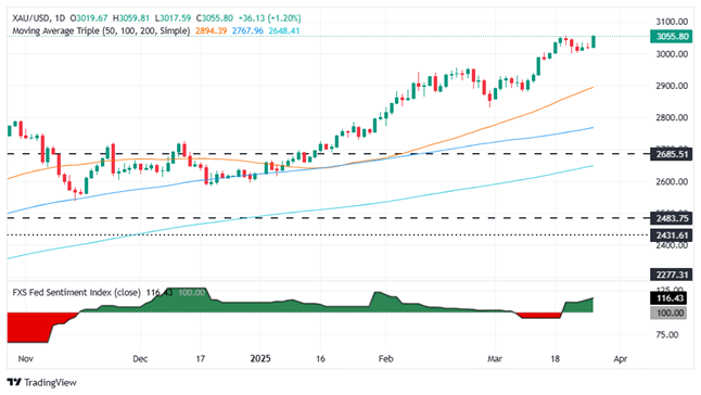 FXStreet分析师Christian Borjon Valencia指出,随着美国总统特朗普对汽车征收关税使贸易战升级,周四黄金价格飙升逾1%,创下3059美元/盎司的历史新高。