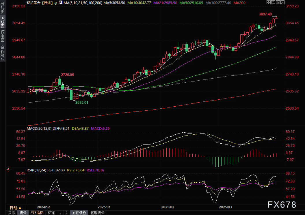 多位分析师指出,黄金技术面呈现强劲上升趋势。独立贵金属分析师杰西·科伦坡表示:"3000美元已成为新支撑位,当前上升动能充沛。"FxPro高级分析师亚历克斯·库普齐克维奇预计金价将在数周内触及3180美元,夏季末上看3400美元。