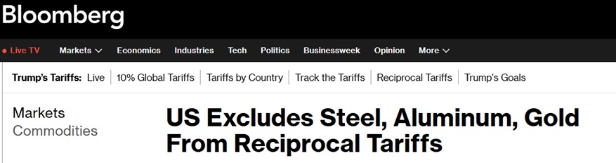 FX168财经报社(亚太)讯 当地时间周三(4月2日),美国总统特朗普(Donald Trump)在白宫宣布对贸易伙伴征收“对等关税”措施。根据白宫声明,美国把黄金、钢铁、铝和铜等商品排除在对等关税之外。