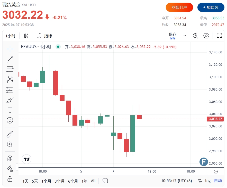FX168财经报社(亚太)讯 周一(4月7日)亚市,黄金价格一度跌破2990美元,但随后反弹缩小跌幅。美国总统特朗普贸易战引发的抛售加剧。由于担心特朗普贸易战将引发全球经济衰退,震惊的投资者纷纷涌入美国国债市场,至少目前他们忽略了同样的惩罚性关税可能引发另一轮通胀风险。