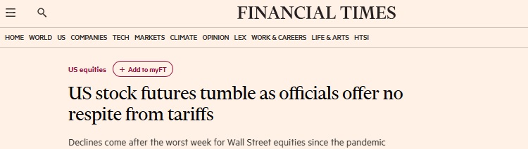 FX168财经报社(亚太)讯 周一(4月7日)亚市早盘,特朗普政府表示,尽管担心可能引发全球经济衰退,但将继续实施全面关税,美国股指期货大幅下跌。
