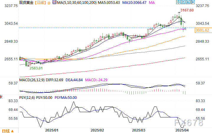 北京时间4月8日10:25 现货黄金 报 3000.15美元/盎司