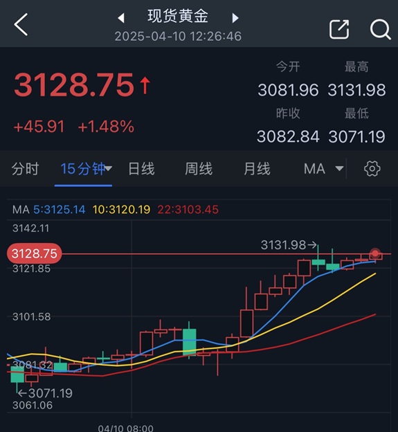 北京时间12:26,现货黄金报3128.75美元/盎司。