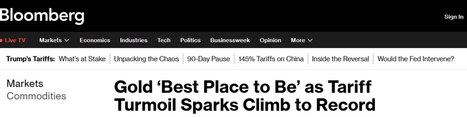 本周,随着对全球经济衰退的担忧席卷华尔街,美国总统特朗普在关税议程上反复无常的信息引发对美国股票、债券和美元的疯狂抛售,黄金的避风港地位得到了强调。即使在特朗普宣布暂停对数十个贸易伙伴加征关税90天后,风险和不确定性依然存在,目前所有中国进口产品的关税至少达到145%。
