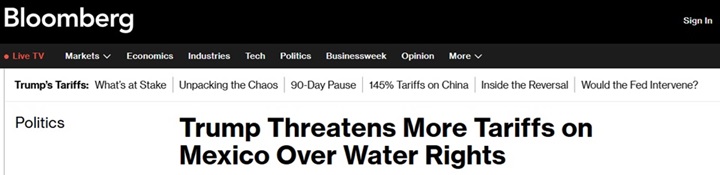 此外,特朗普周四威胁对墨西哥征收新关税,甚至可能实施制裁,这加剧了美国南部边境水资源争端。