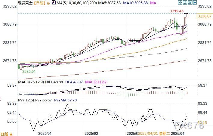 北京时间4月11日10:29 现货黄金 报 3216.07 美元/盎司
