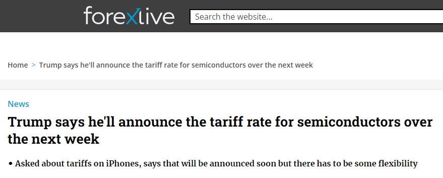 不过,美国总统特朗普最新发表讲话,他宣布,将在未来一周内宣布半导体的关税税率,此外,半导体关税将在不久的将来生效。