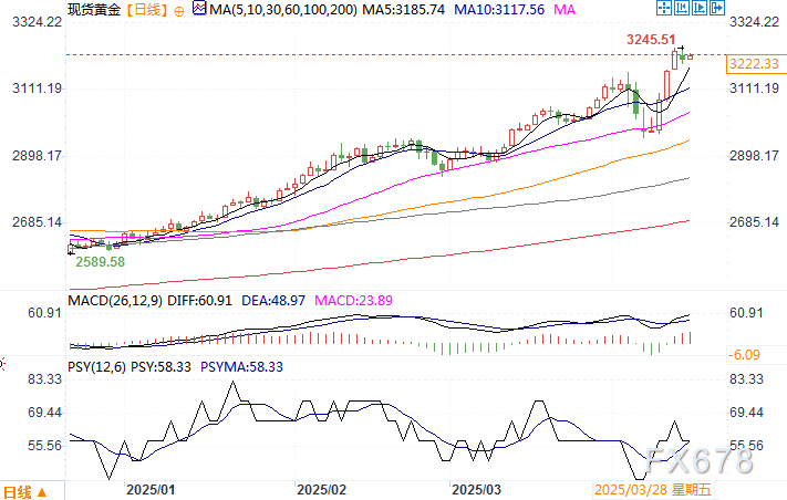 北京时间4月15日11:03 现货黄金 报 3225.33 美元/盎司