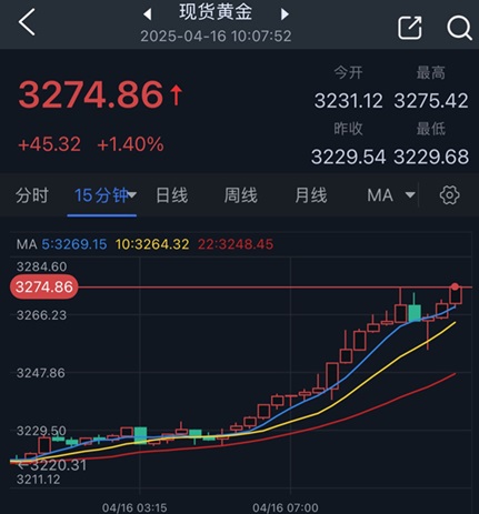 现货黄金刚刚触及3275.42美元/盎司,创下历史新高。