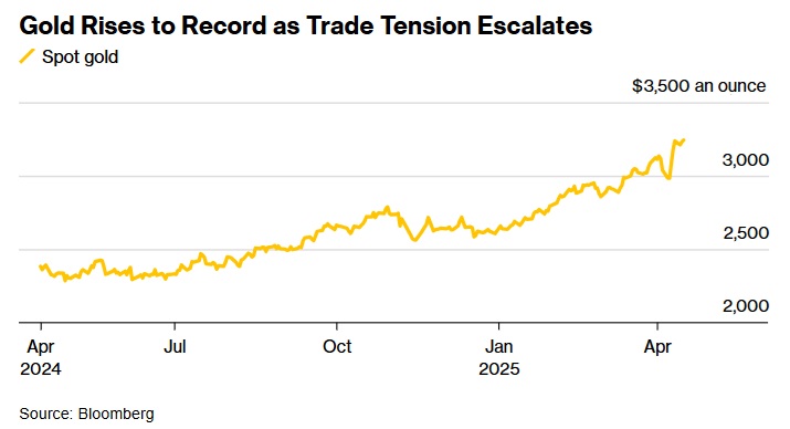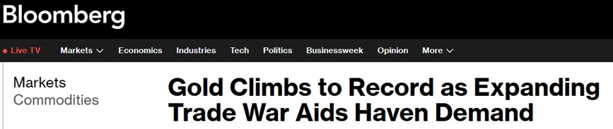 美国彭博社周三最新报道称,随着特朗普政府推进可能扩大贸易战的调查,刺激了对避险资产的需求,金价创下历史新高。