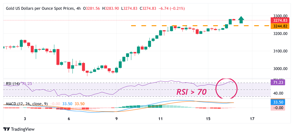 24K99讯 周三(4月16日)欧市早盘,现货黄金维持日内暴涨走势,金价刚刚触及3299.98美元/盎司,创下历史新高,金价日内暴涨70美元。FXStreet分析师Haresh Menghani撰文,对金价技术走势进行分析。