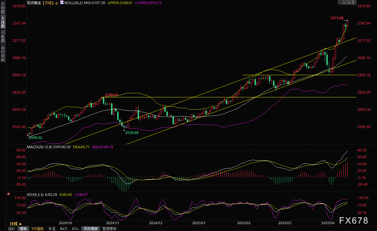 俄乌冲突的持续以及复活节休战协议的破裂,进一步加剧地缘政治不确定性,而美国可能放弃调停的信号,更让市场对局势缓和的预期降低,避险资金再度涌入黄金市场,现货黄金周一(4月21日)亚市早盘震荡走高逾40美元,一度上涨逾1.3%至3373.98美元/盎司,再度刷新历史记录高点。
