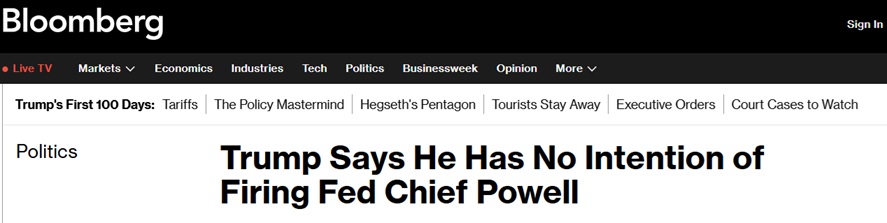 彭博社称,特朗普周二晚间在华盛顿对鲍威尔的评论,抵消了本周早些时候引发投资者对美联储独立性的担忧。