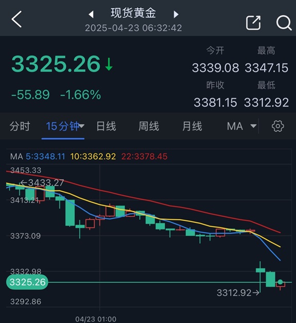 周三(4月23日)亚市盘初,金融市场突然出现剧烈波动。美国总统特朗普表示,无意解雇美联储主席鲍威尔,受此影响,美元短线飙升,现货黄金出现惊人暴跌。