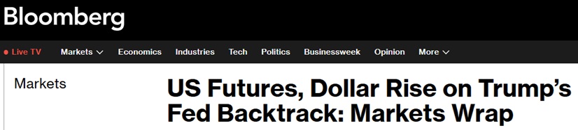 美国彭博社称,在特朗普表示无意解雇鲍威尔,且市场对贸易紧张局势可能缓解的乐观情绪升温后,美国股指期货飙升,美元走强。