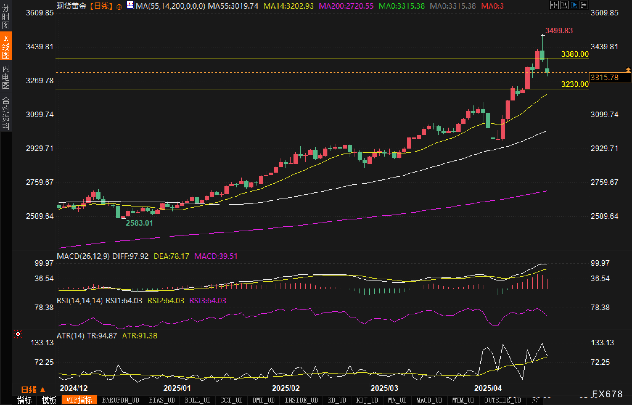 中长期展望:日线级别上行结构并未被完全破坏,若未来美国政策不确定性上升或经济数据疲弱,再度推动避险需求回暖,金价仍可能重拾升势并冲击3500美元甚至更高区域。相反,若权益市场继续走强,金价则面临更深程度的回调压力。