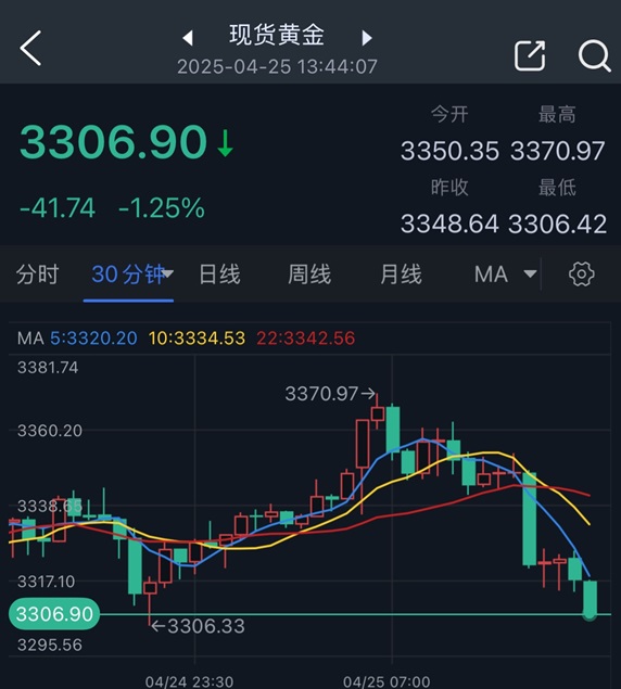 北京时间13:44,现货黄金报3306.90美元/盎司。
