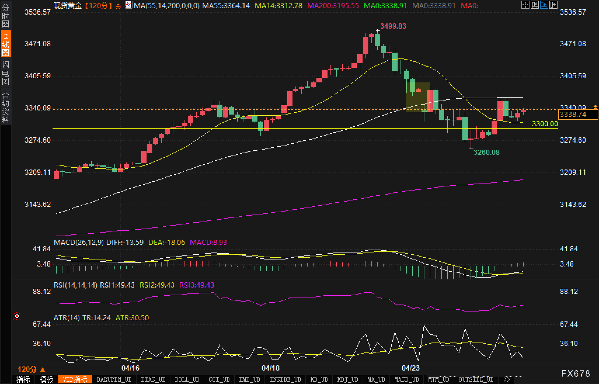 从120分钟图表来看,金价经历了从3500美元附近的回调后,目前正在3300美元上方企稳。K线形态表现出典型的盘整-回踩-反弹走势,MACD指标显示DIFF与DEA之间的差距正在缩小,暗示短期动能可能即将转向。值得注意的是,RSI指标目前位于49.43附近,处于中性区域,既不过热也不过冷,为接下来的行情发展提供了较大空间。