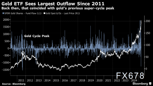 本周早些时候,投资者从SPDR黄金股票ETF撤出12.7亿美元,创2011年以来的最大单日资金流出量。与此同时,金价触及3500美元上方的历史高点,这表明可能存在一些获利回吐的因素。2011年,类似的资金流出恰逢黄金上一次超级周期峰值,标志着黄金进入了长期盘整期,直到2020年才得以突破。但这并不能保证这将成为一个转折点,仍有许多利好因素在发挥作用,包括贸易不确定性、避险需求、央行需求以及华尔街对现货金价进一步走高的呼声。