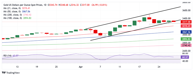 24K99讯 周二(4月29日)亚市盘中,现货黄金突然大幅下滑,目前金价位于3308美元/盎司附近,日内暴跌36美元。FXStreet高级分析师Dhwani Mehta周二撰文,对金价技术走势进行分析。