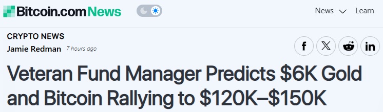 在他看来,这两种资产互为补充:黄金提供实质保险,而比特币则在数字经济中提供了便携性。