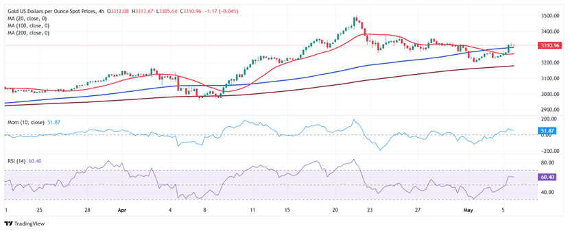 (现货黄金4小时图 来源:FXStreet)