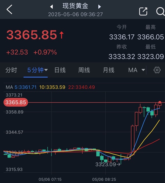 北京时间09:36,现货黄金报3365.85美元/盎司。