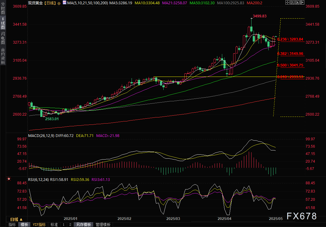 周二(5月6日)亚市盘初,现货黄金在近一周高位窄幅震荡,目前交投于3330美元/盎司附近。受美元走软和避险需求推动,金价周一上涨近3%,现货黄金收报3333.73美元/盎司,较上周五收盘价上涨近100美元,市场正在等待美联储本周晚些时候的政策决定。