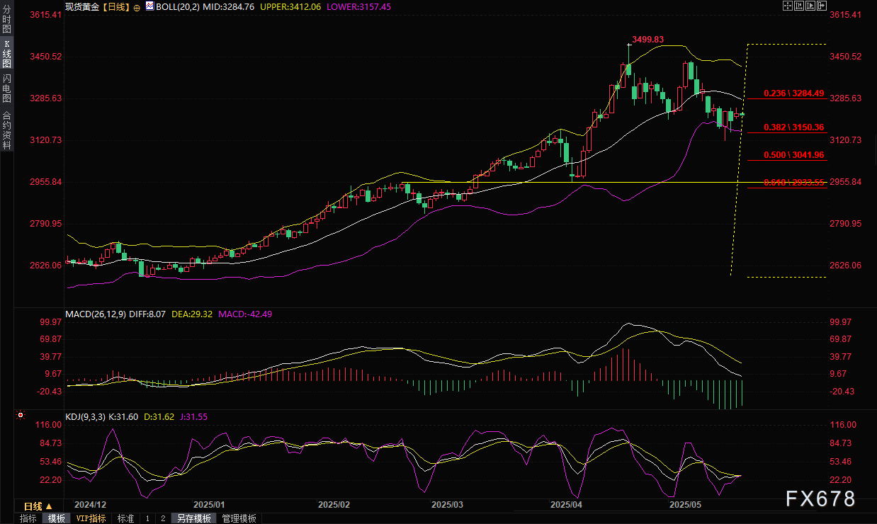 金价周一(5月19日)震荡上涨,现货黄金一度涨至3250关口附近,收报3230.07附近,受穆迪下调美国政府信用评级后,美元走软和避险需求的推动。周二(5月20日)亚市,现货黄金则小幅走弱,目前交投于3220美元/盎司附近,跌幅约0.3%,市场憧憬特朗普和普京周一通话后将推进俄乌停火,对地缘局势的担忧情绪有所降温,而且美联储官员讲话偏向鹰派,打压美联储年内降息预期。