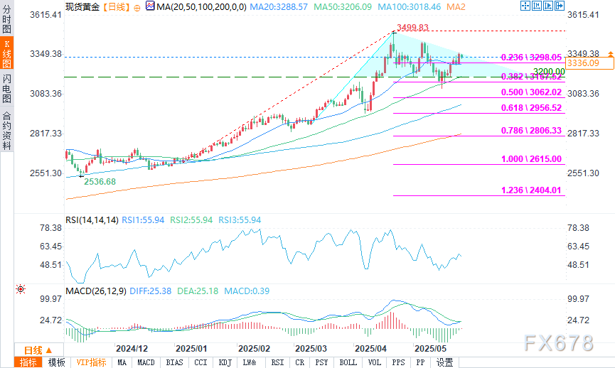周一(5月26日)欧盘时段,由于美国市场因阵亡将士纪念日休市,且特朗普推迟了对欧盟的“直接征收50%关税”威胁,黄金价格在清淡交易中走软。这一延迟降低了避险需求,但更广泛的市场驱动因素仍有利于黄金的看涨前景。