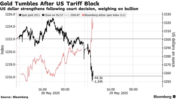 彭博社指出,美国贸易法庭的裁决是特朗普激进关税议程引发的市场不确定性的最新转折,此前这种不确定性促使投资者转向黄金这一传统避险资产寻求避险。