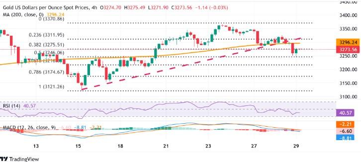 另一方面,看跌的交易者现在可能会等待跌破亚洲交易时段低点的持续疲软,大约在3246-3245美元区域(50%回撤位),然后再进行新的押注。随后的下跌可能会将金价拖至61.8%的斐波拉契回撤位,在3215美元附近。在金价最终跌至3180美元的支撑位之前,下行轨迹可能会延伸至3200美元整数位。