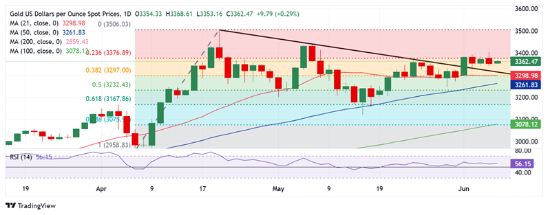 24K99讯 周五(6月6日)亚市尾盘,现货黄金维持日内反弹走势,目前金价位于3363美元/盎司附近。FXStreet高级分析师Dhwani Mehta撰文,对金价技术走势进行分析。
